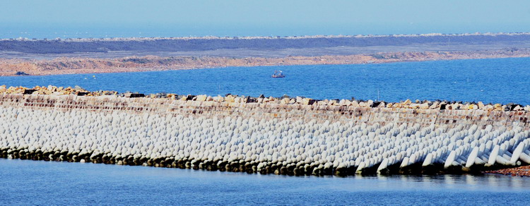 石壩消浪技術(shù)具有消浪效果好、使用年限長(zhǎng)、結(jié)構(gòu)穩(wěn)定性好等特點(diǎn)。石壩的結(jié)構(gòu)形式、石壩與湖堤的距離、石壩的高度以及堤頂寬度等,將直接影響到石壩的造價(jià)和消浪效果。石壩的結(jié)構(gòu)選形,應(yīng)根據(jù)自然條件、材料來源、使用要求和施工條件等,經(jīng)技術(shù)比較確定。斜坡堤適用于地基較差和石料來源豐富的情況,正砌方塊直立堤適用于地基較好的情況。石壩與湖堤的距離取決于湖堤內(nèi)需要建設(shè)的湖濱帶的寬度。石壩的堤頂高程取決于設(shè)計(jì)高水位和工程允許越浪的程度。堤頂?shù)母叱虅t根據(jù)湖泊的設(shè)計(jì)波高值取值。實(shí)際情況中湖內(nèi)的大部分石壩在低水位時(shí)往往露出水面,基本不越浪或有少量越浪;在湖泊高水位時(shí),則沒入水中,起到潛堤效果。潛堤也能有效地消減作用于湖堤岸線前及灘地上的波浪,能在較大范圍內(nèi)改變波浪形態(tài),使其由破碎波轉(zhuǎn)變?yōu)闇\水推進(jìn)波,改善原湖堤岸線前灘地上的波浪、水流動(dòng)力條件,從而達(dá)到保護(hù)原湖堤岸線與湖灘免受波浪淘刷的目的。