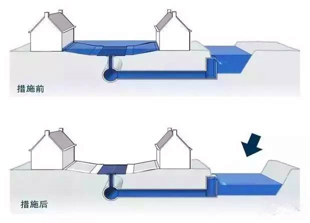 RIONED基金會認為一般傳統的下水系統是按照普通情況下的降雨量設計的,一旦遇到大暴雨,往往不堪負荷。因此為了防止大暴雨帶來的危害,就需要采取額外的措施,比如讓水滲入土壤、將水排到公開水域和利用街道或公共空間短期地儲水。這和我們國家提出的海綿城市建設是異曲同工的。
